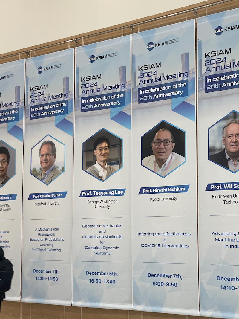 Dr. Lee presented a plenary talk at the 2024 Anuual Meeting, organized by the Korea Society of Industrial and Applied Mathematicsl (KSIAM). This conference was speciallzy organized to celebrate of the 20th annivasary of KSIAM, and was held in Pusan, South Korea.